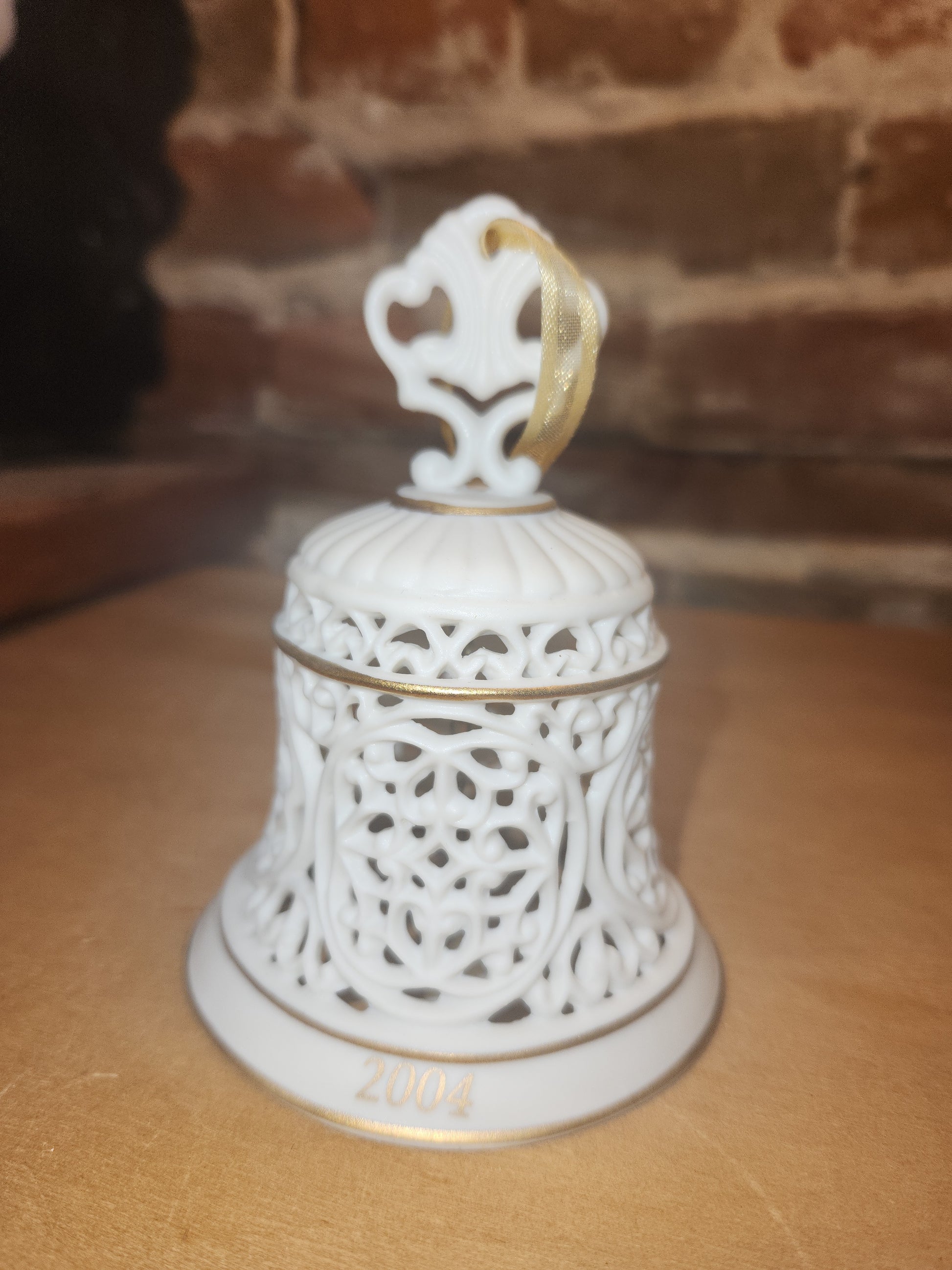 Vintage Wedgwood Christmas Ornament Bell Filigree Gold Trim