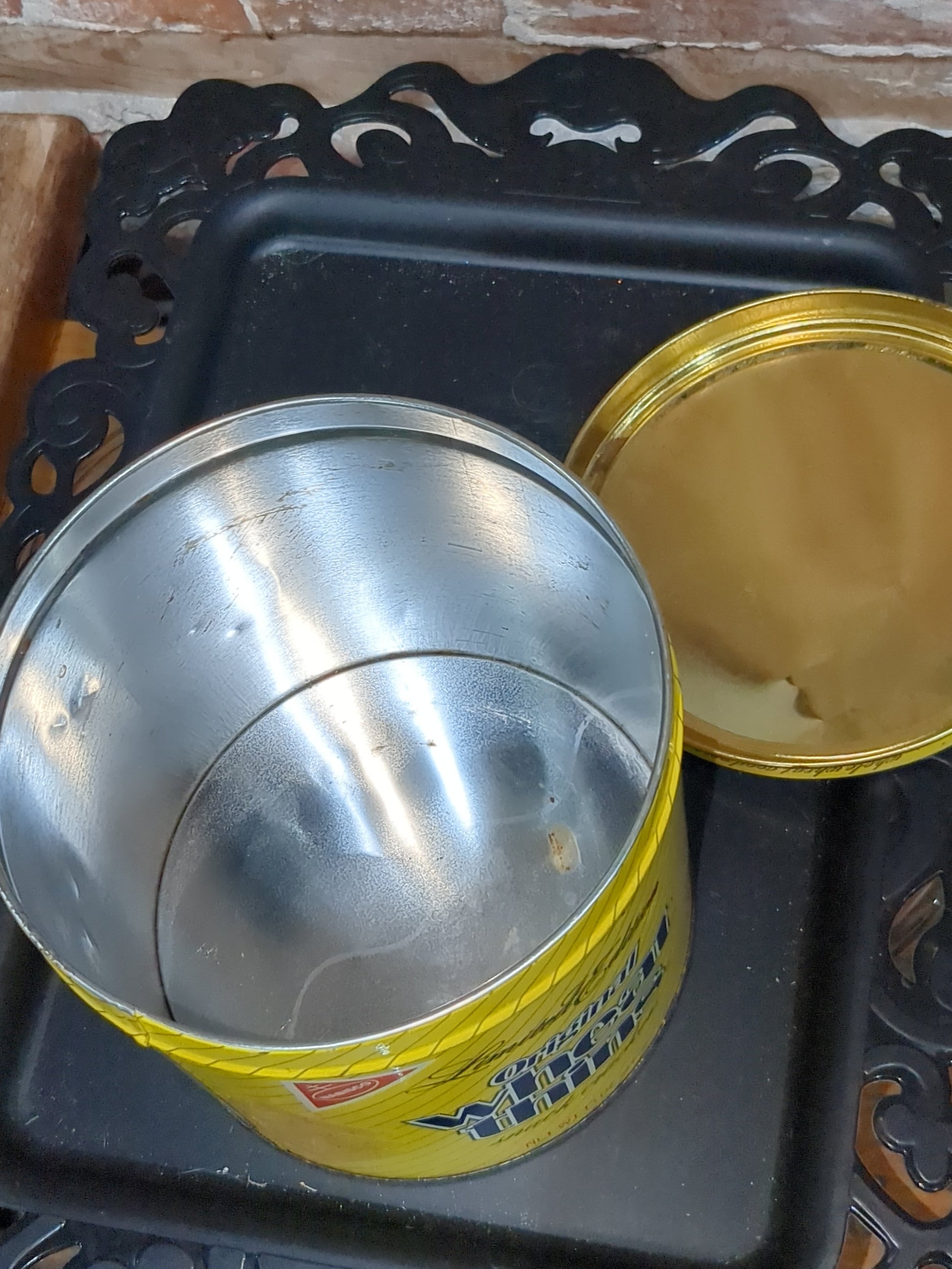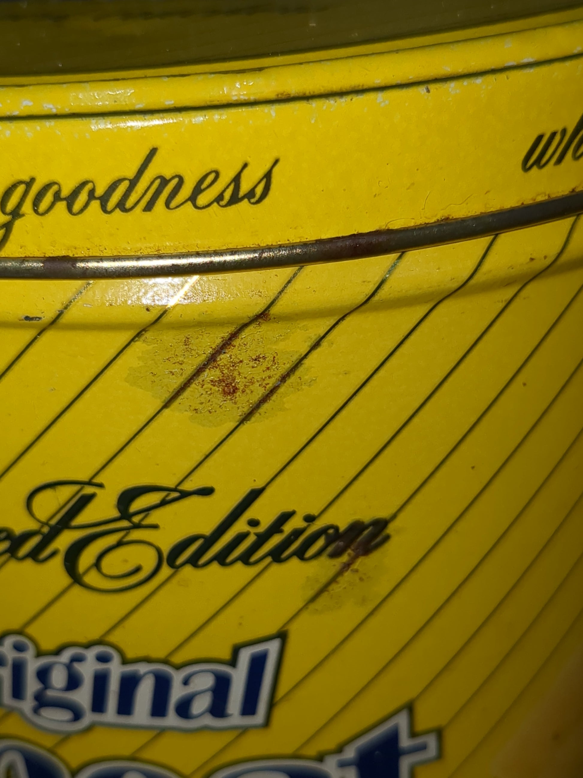 Vintage 1987 Nabisco Original Wheat Thins Snack Cracker Tin 13oz Limited Edition. 6" x 5.75. Outside has scratches, wear and a bit of rust especially along lid and bottom lips. Inside has surface rust or grease spot on the bottom. Please see photos as they are part of the description