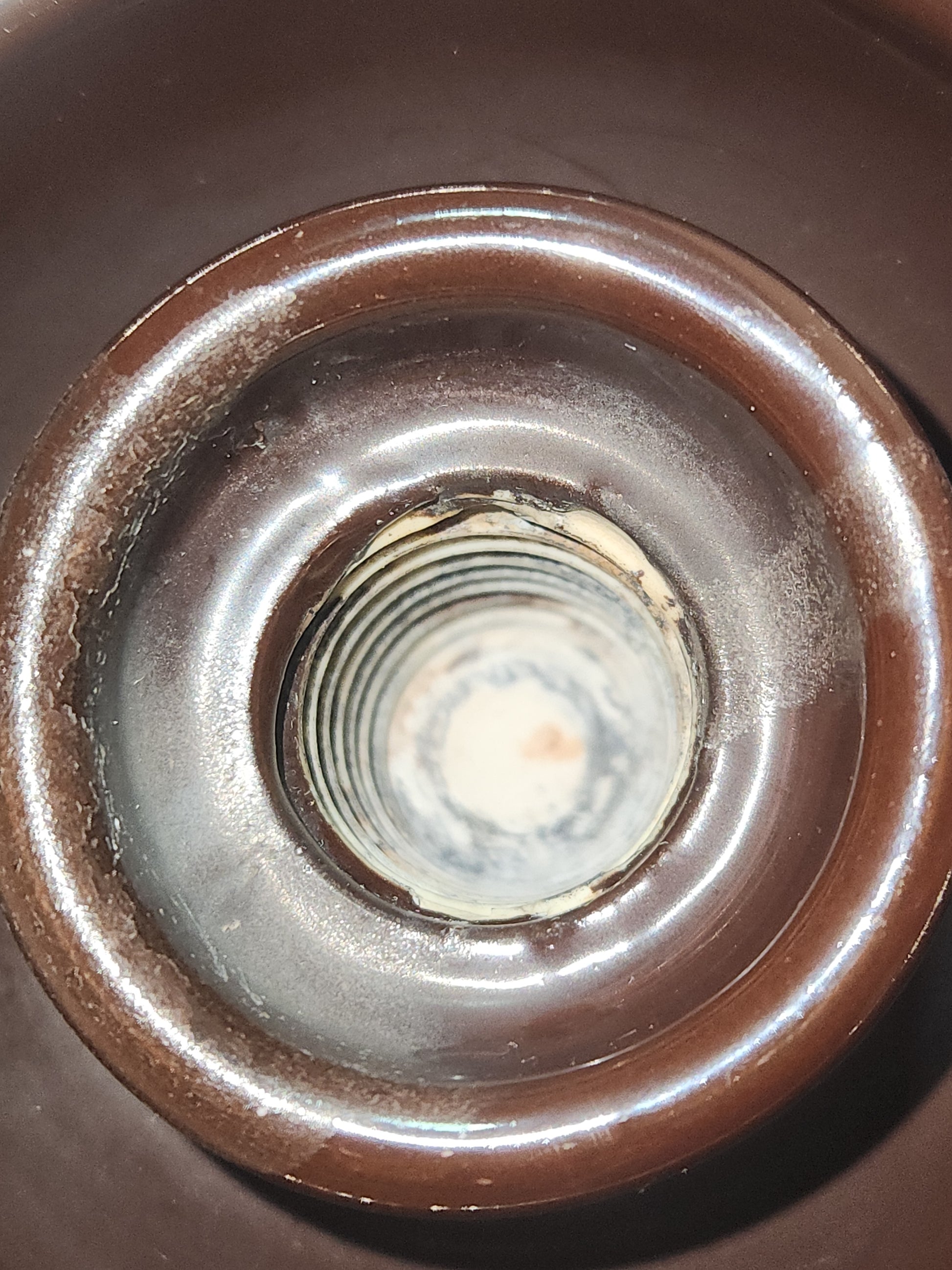 This insulator is in good condition, i do not see or feel any chips or cracks. There is an area where the glaze is rough and not smooth. There are scratches in the middle where wire ran Please see photos as they are part of the description.