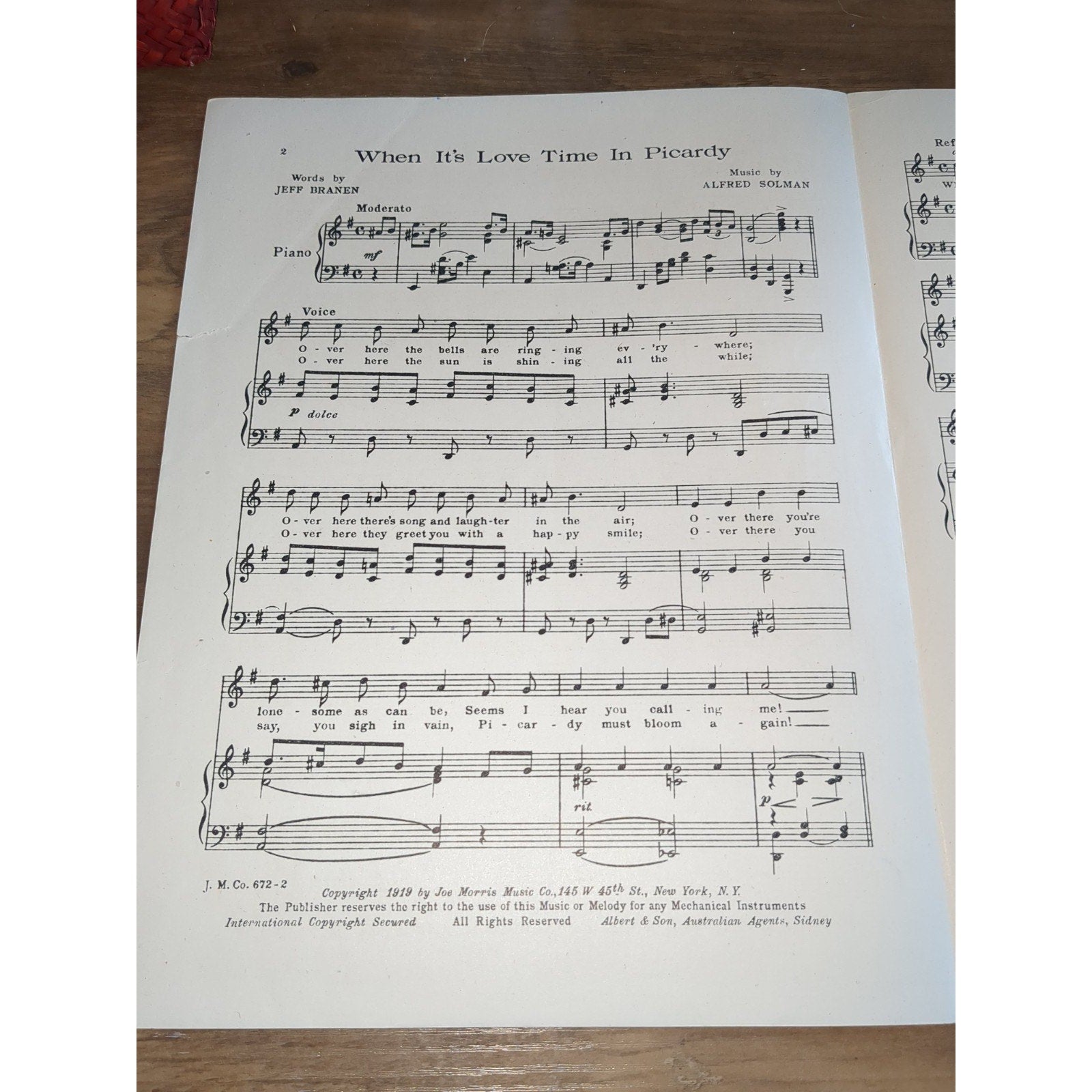 When It's Love Time In Picardy 1919 WWI Pretty Girl Vintage Sheet Music