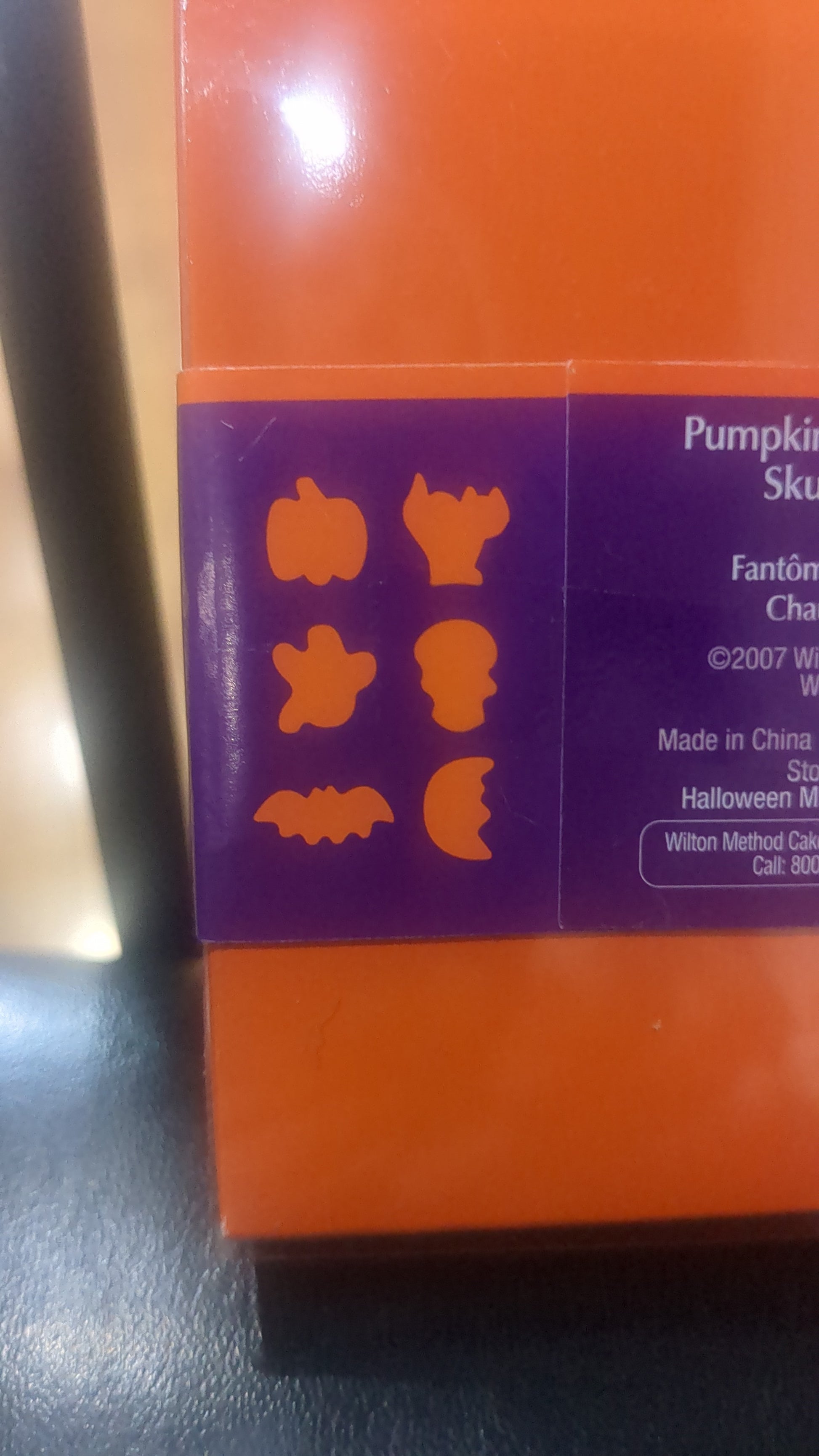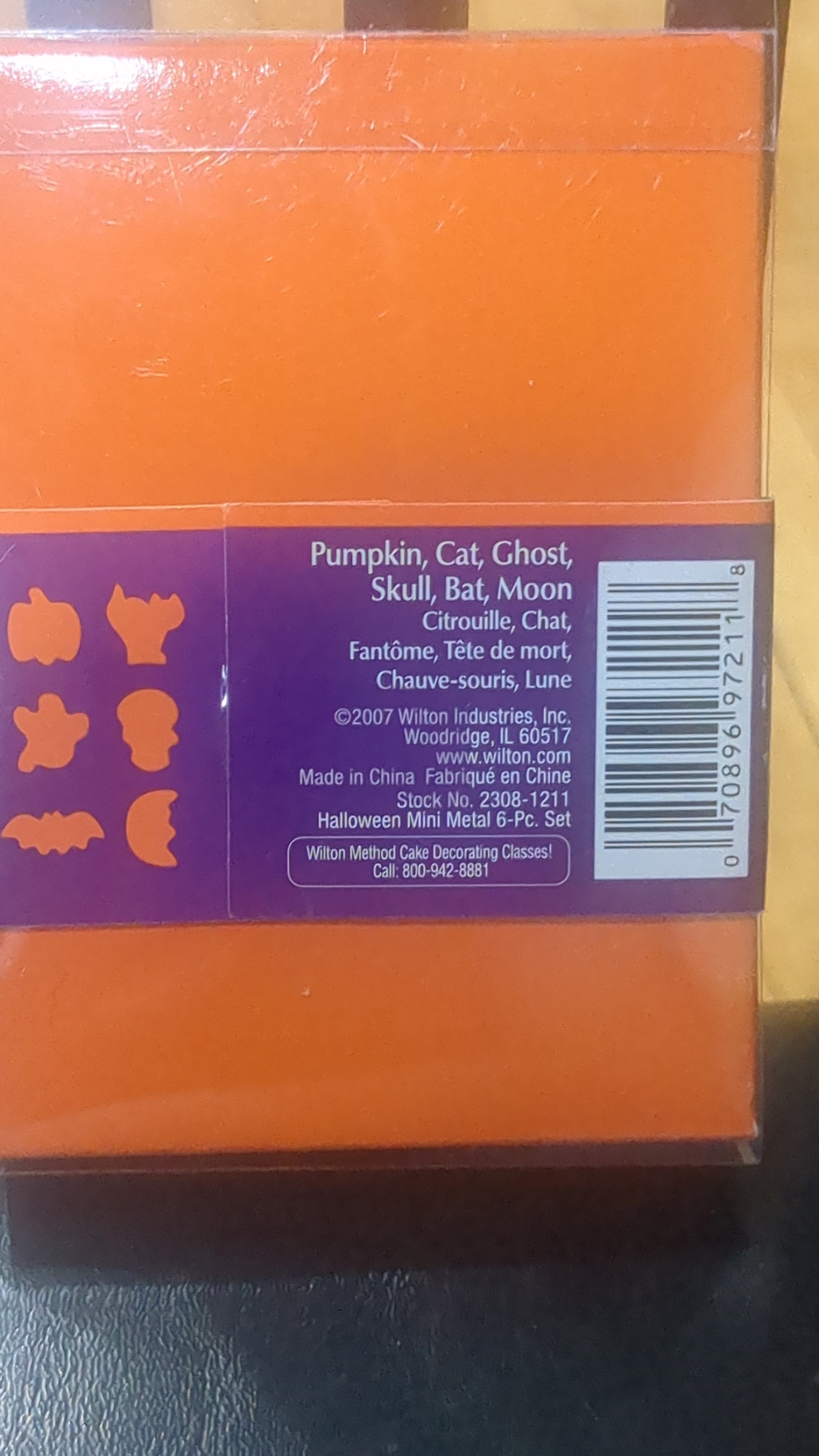 This is an unopen package from Wilton with Halloween mini cookie cutter set with six mini cookie cutters. Cutters include a pumpkin cat ghost skull bat and moon This is dated 2007.